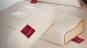 Bezugstoff:    edler Mako-Feinperkal, 100% Baumwolle, unterlegt mit Oulast®-Vlies, mit grauer Biese und Seitenteil aus grauem Klimaband (100% Polyester)